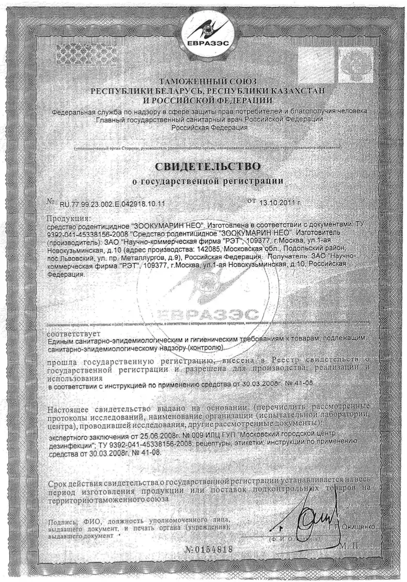| отечественные родентициды в контейнерных приманочных станциях | |