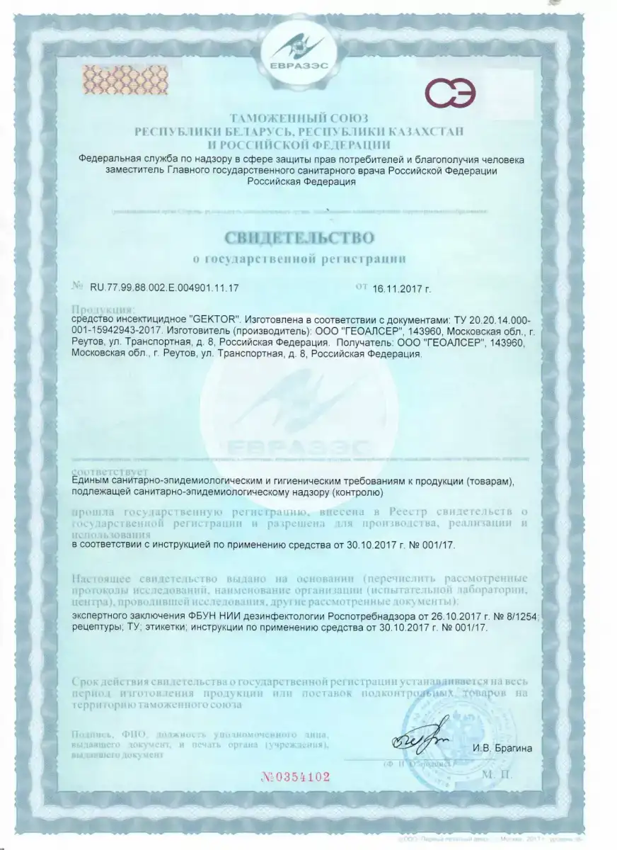 На все виды дезинсекции мы предоставляем гарантию по договору сроком до 1 года. Если в гарантийный период ползающие насекомые появятся повторно — проведём дополнительную обработку бесплатно. По завершении работ клиент получает договор, акт выполненных работ, гарантийный талон и копии сертификатов на все использованные составы.