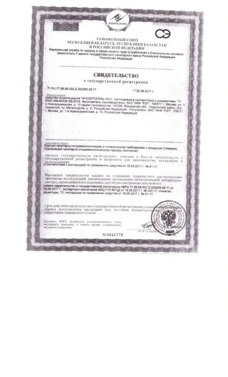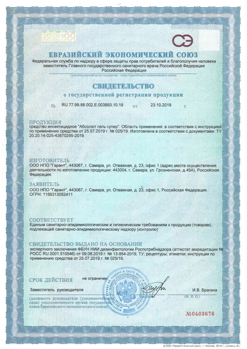 Компания закупает препараты кишечного и контактного действия только у официальных поставщиков — каждая партия сопровождается свидетельством о государственной регистрации и паспортом безопасности.
