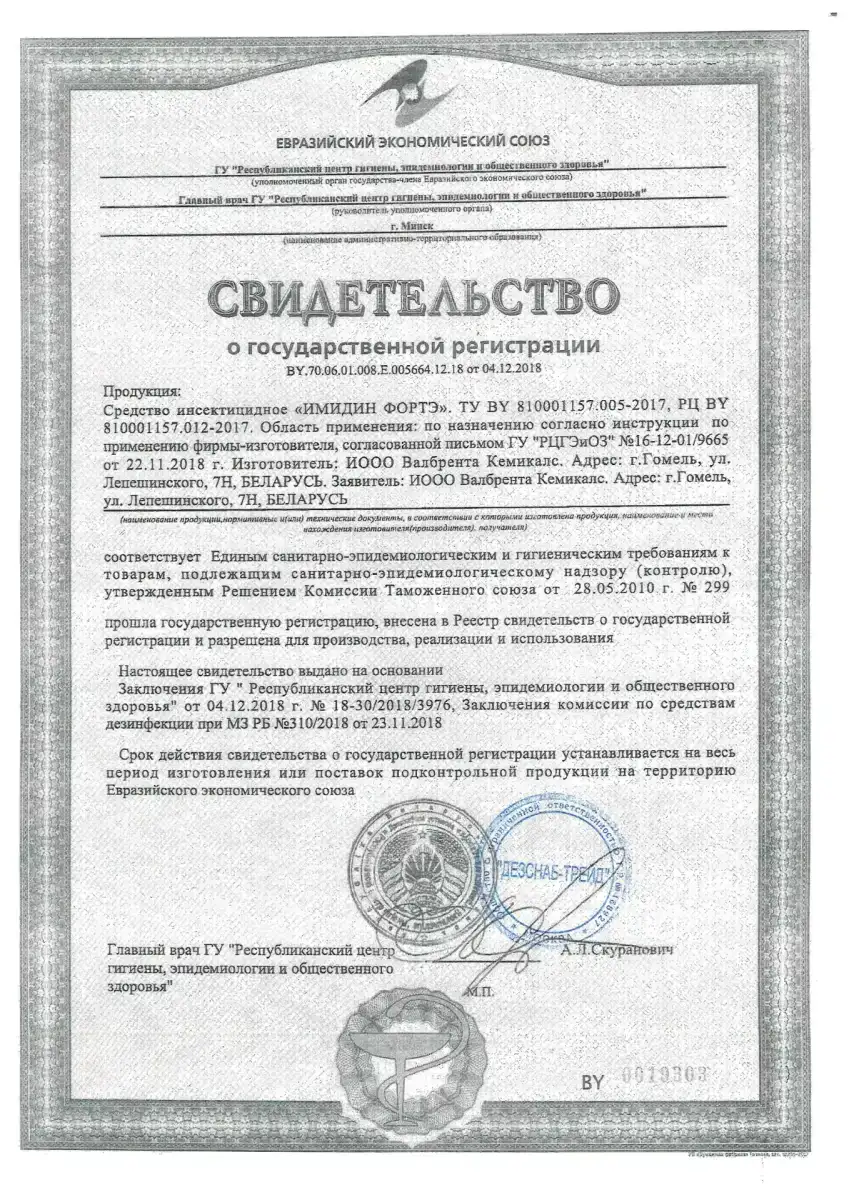 - Имидаклоприд — неоникотиноид, нарушает передачу нервных импульсов. Эффективен в микродозах.