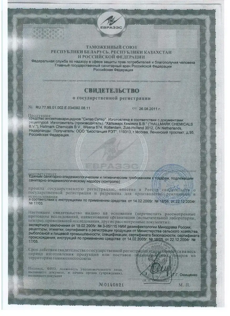 | импортные пиретроиды, удаление гнёзд, барьерная профилактика, полный пакет документов | |