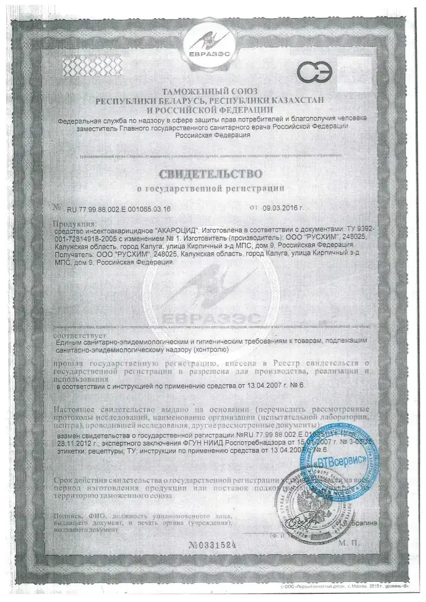 Все препараты имеют государственную регистрацию, относятся к IV классу опасности (малоопасные) и разрешены для применения в жилых помещениях согласно СанПиН 2.1.2.2645-10.