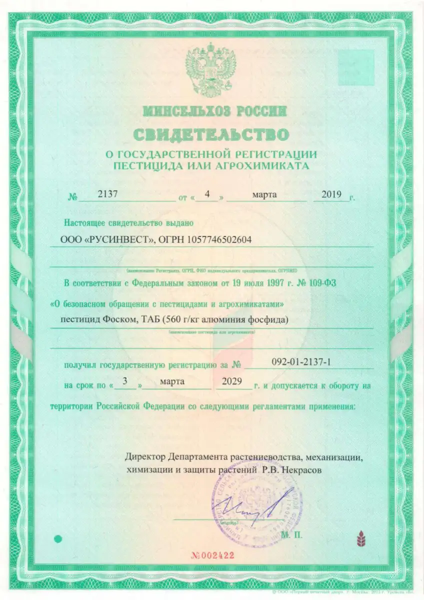 Все фумиганты и родентициды имеют государственную регистрацию и разрешены для применения на садовых участках, вблизи жилых построек и в местах содержания домашних животных — безопасно для почвенной микрофлоры и питомцев.