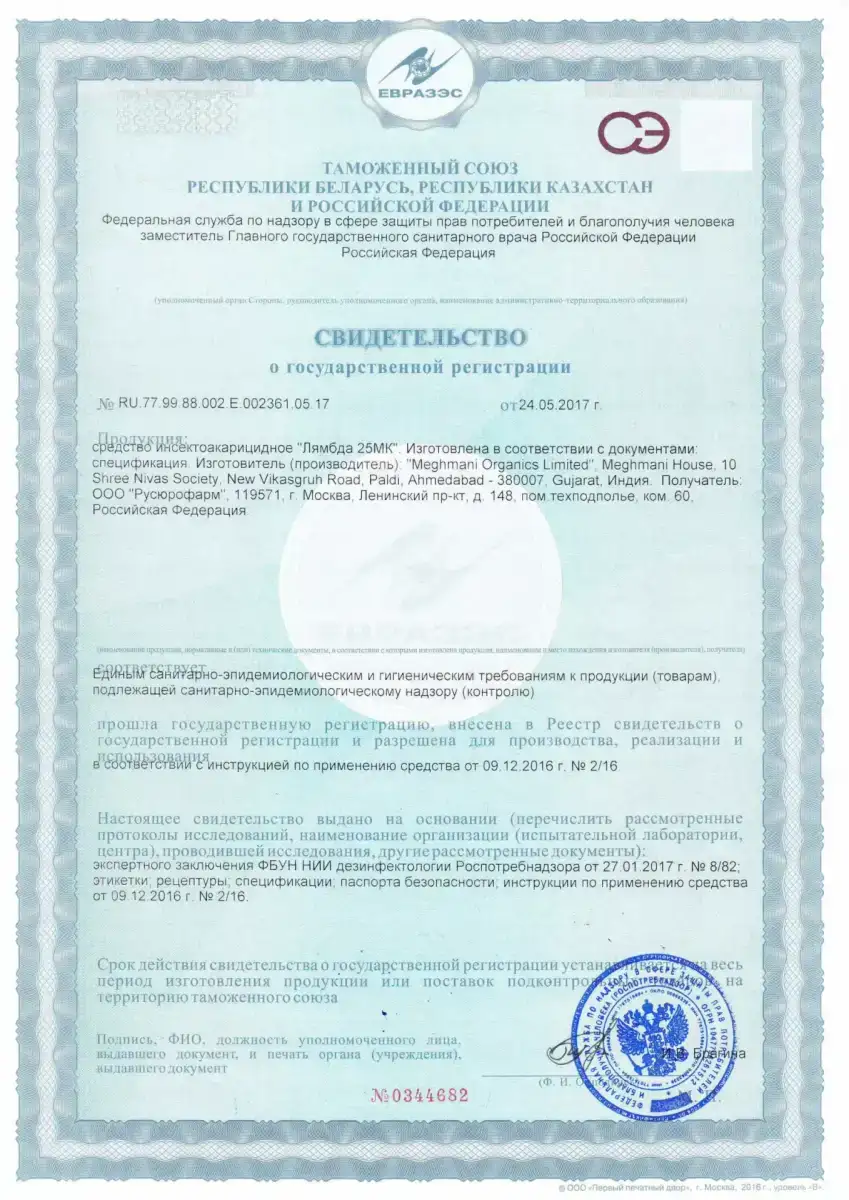 | импортные акарициды, истребление клещей с защитой периметра и документальным оформлением | |