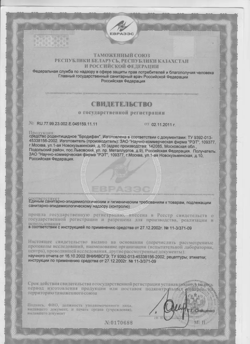 Применяем антикоагулянтные родентициды 4-го класса опасности (бродифакум, бромадиолон) — безвредны для людей при соблюдении регламента. Все препараты размещаем в контейнерных приманочных станциях, закрытых от детей и домашних питомцев.