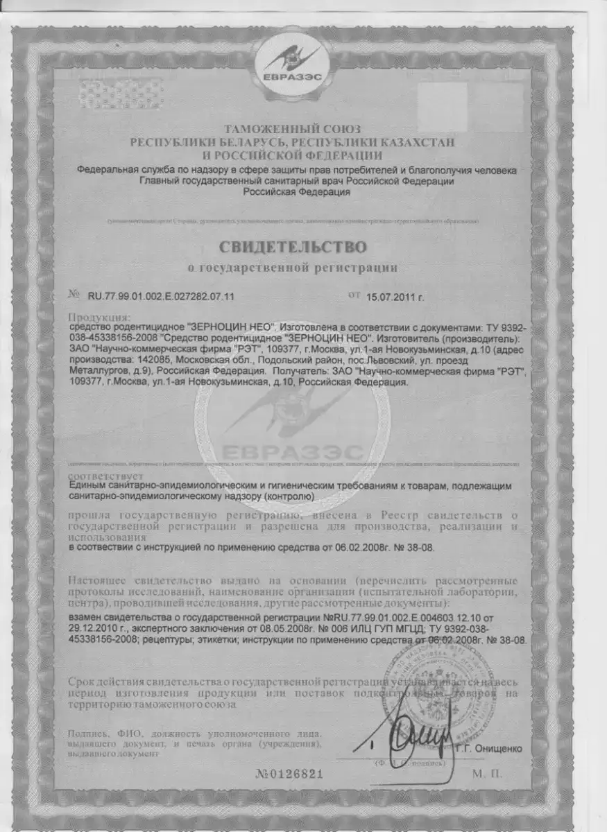 Сертификаты на препараты для дератизации