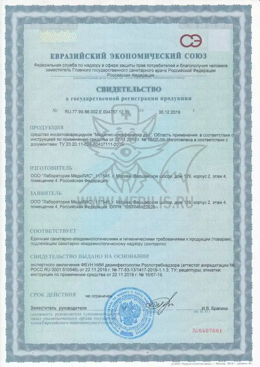 Выдаём акт выполненных работ, сертификаты на препараты и кассовый чек. Документы подходят для отчётности перед управляющей компанией или страховой