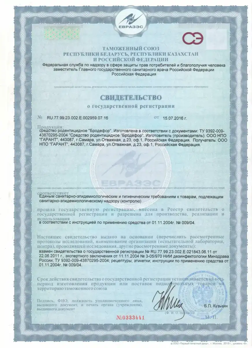 Оформляем акт дератизации, гарантийный талон и предоставляем сертификаты на препараты — полный пакет для Роспотребнадзора и управляющих компаний