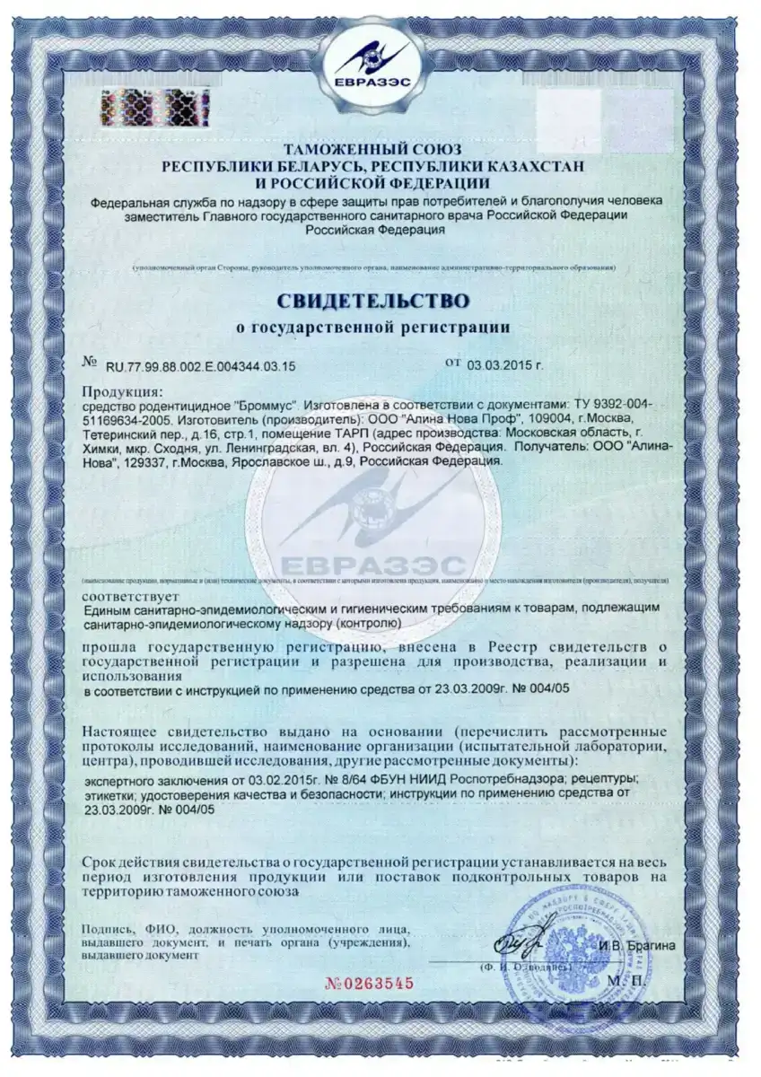 Все применяемые родентициды имеют государственную регистрацию и разрешены для использования в жилых помещениях, детских учреждениях и на объектах общественного питания — безопасно для семьи и домашних питомцев при соблюдении регламента.