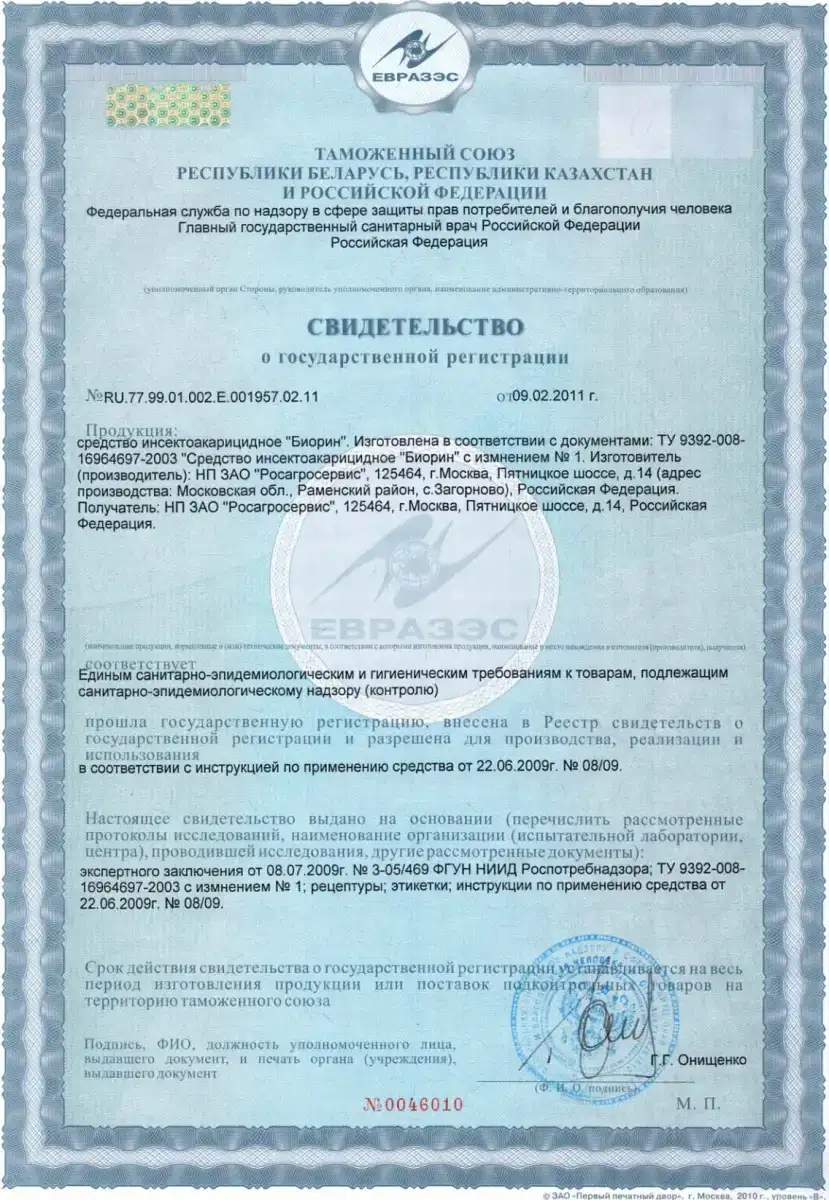 Выдаём акт выполненных работ, сертификаты на препараты и кассовый чек. Документы подходят для отчётности перед управляющей компанией или страховой