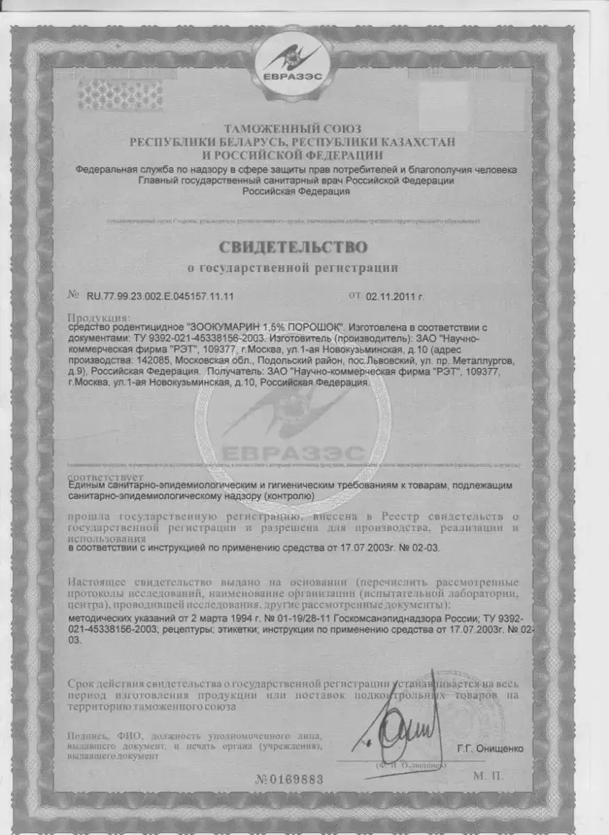 Сертификаты на препараты для профессиональной дератизации участка
