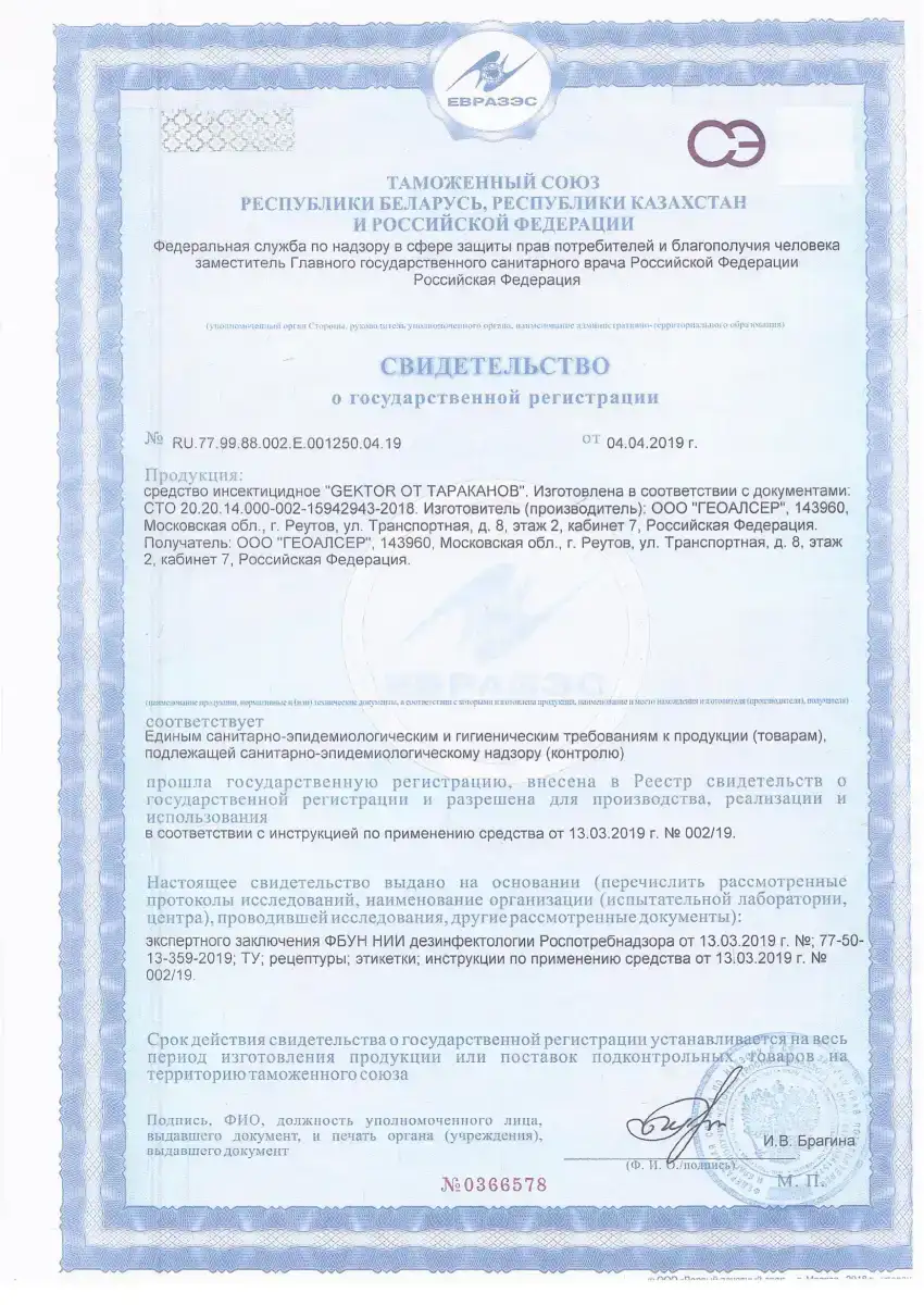 Сертификаты на применяемые препараты для дезинсекции