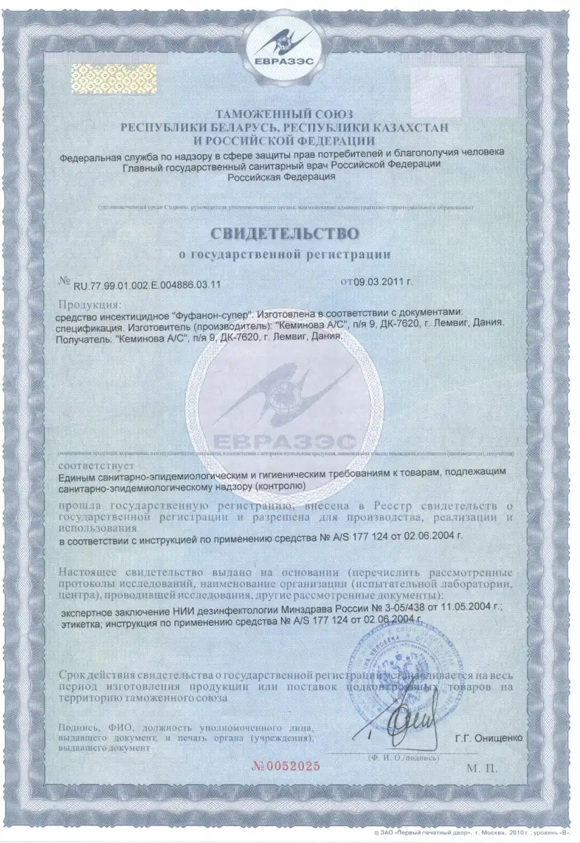 Сертификаты на препараты для дезинсекции помещений