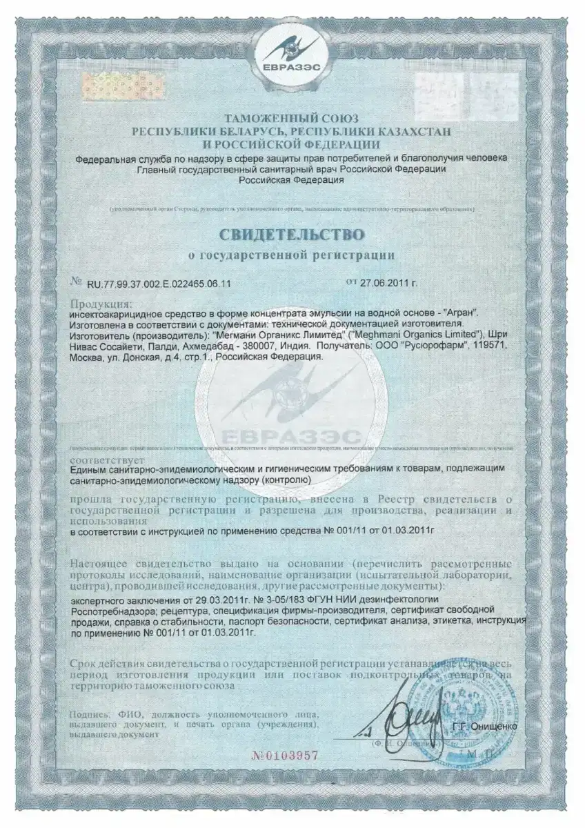 Сертификаты на препараты для дезинсекции помещений