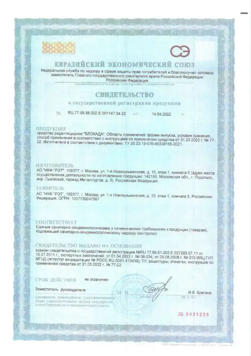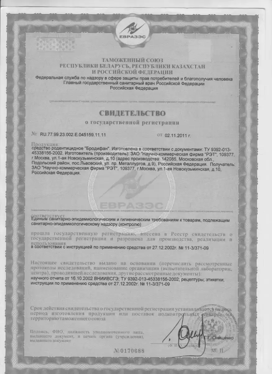 Все родентициды имеют государственную регистрацию и разрешены для применения в жилых помещениях, детских учреждениях и на предприятиях общественного питания — безопасно для детей и домашних животных при соблюдении регламента.