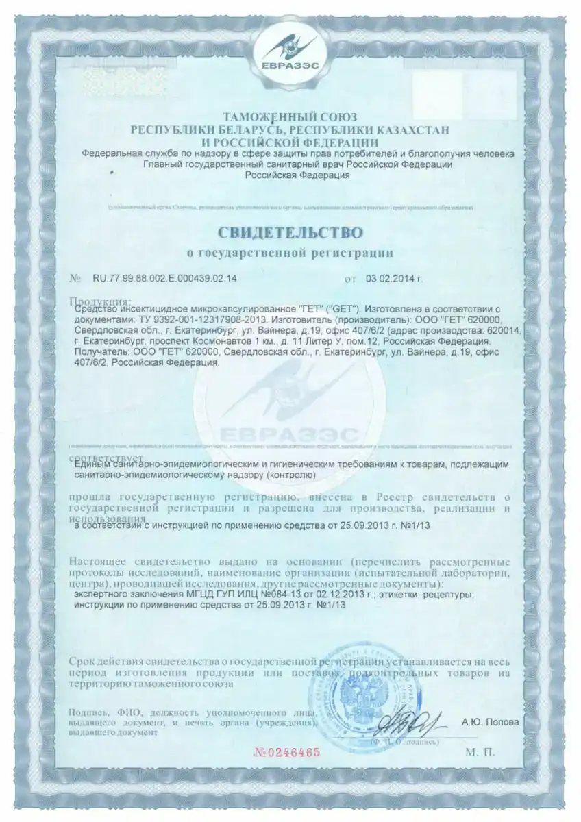 Сертификаты на средства для дезинсекции от вредителей продуктовых запасов