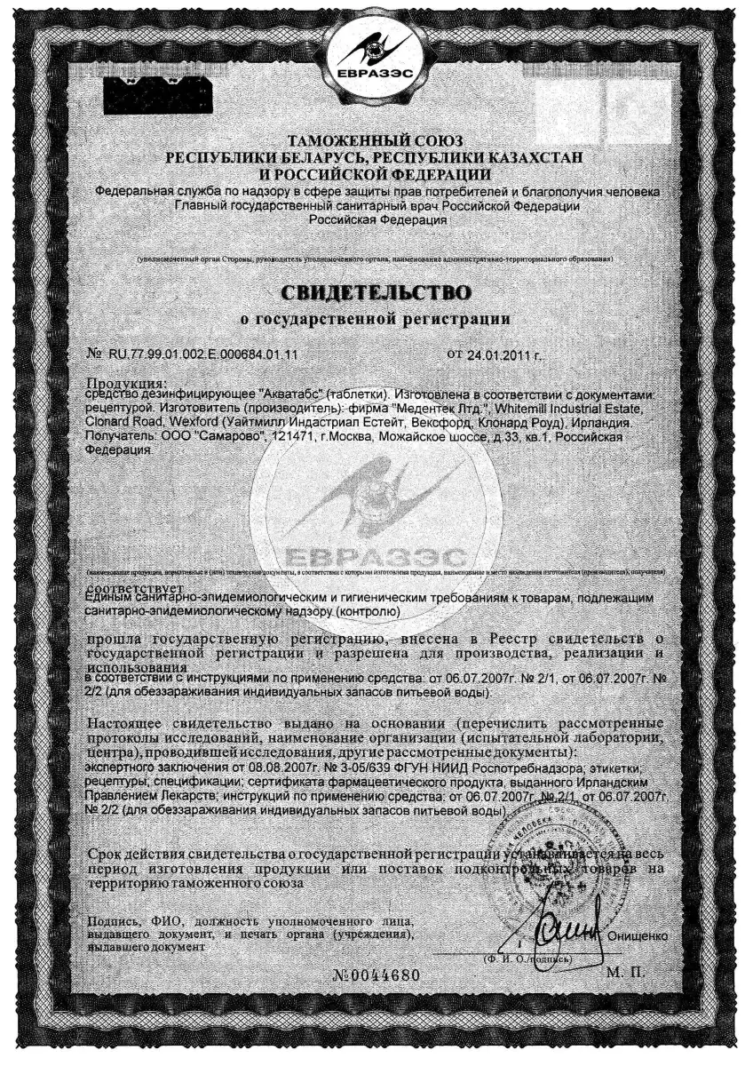 Сертификаты на применяемые средства и препараты