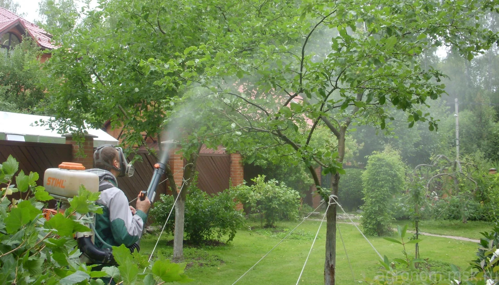 Профессионал располагает оборудованием для мелкодисперсного опрыскивания (моторные ранцевые распылители, генераторы тумана), которое обеспечивает равномерное покрытие кроны, включая нижнюю сторону листьев — основное место обитания вредителей.