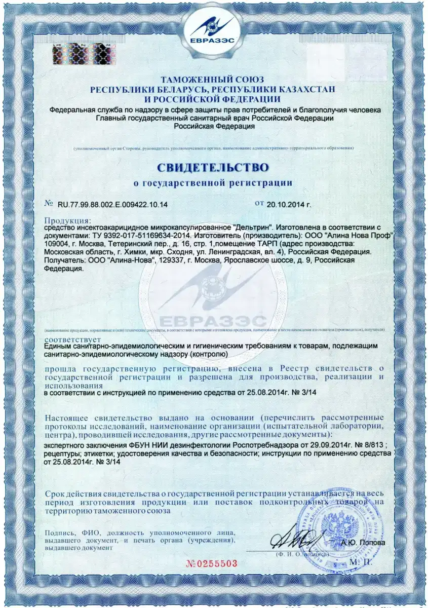 | сертифицированные инсектициды, оформление полного пакета документов | |