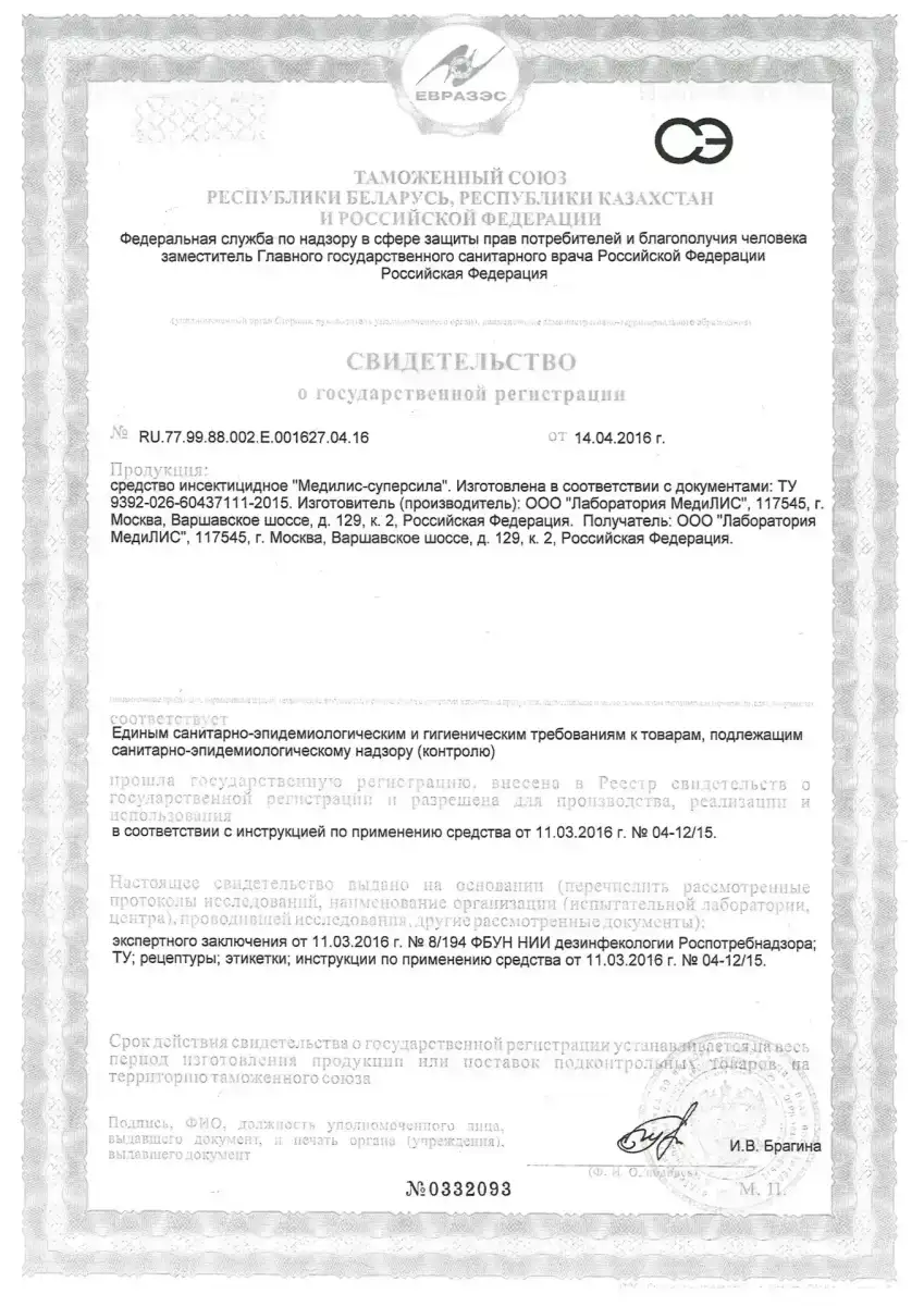 Сертификаты на препараты для дезинсекции от клопов